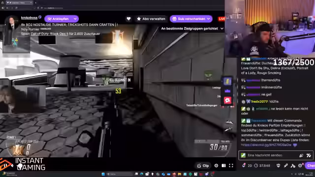 00:00:05Der Stream beginnt mit technischen Schwierigkeiten, da der Streamer zweimal OBS geöffnet hat, was zu Problemen mit der Kamera und dem Discord-Sound führt. Nachdem die technischen Hürden überwunden sind, konzentriert sich der Streamer auf die Spieleinstellungen für Black Ops 2. Es wird besprochen, welche Waffen und Perks für die verschiedenen Spielmodi wie Search and Destroy, Hardpoint und Capture the Flag am besten geeignet sind. Die Notwendigkeit, Klassen im öffentlichen Spiel zu erstellen, wird hervorgehoben, um von den zehn verfügbaren Klassenplätzen zu profitieren. Es wird auch über die Schwierigkeit gesprochen, sich an das Spiel zu gewöhnen, da es lange nicht gespielt wurde und die Maus- und Tastatur-Einstellungen noch angepasst werden müssen.