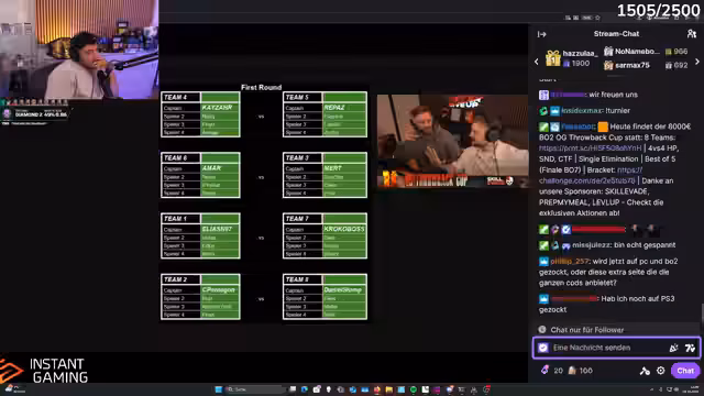 00:07:22Der Streamer gibt einen Überblick über das bevorstehende Black Ops 2 Turnier und stellt die teilnehmenden Teams vor. Er selbst ist Teil von Team Slump, zusammen mit Daniel, Philo und Mali. Die Team-Heads sind Team Kaiser, Team Reapers, Amar, Merz, Eli, Kroko, Penta und Slump. Es wird diskutiert, welche Teams als besonders stark eingeschätzt werden, wobei Team Kaiser mit Kaiser, Neusi, Floyd und Anaya sowie Team Reaps mit Reaps, Aquaria, Phalaxi und Zepho als brutale Teams genannt werden. Der Streamer äußert sich auch zu seinem eigenen Team und den Gegnern, insbesondere Team Pentagon, gegen die sie als erstes antreten werden. Es wird erwähnt, dass in jedem Team mindestens ein Spieler ist, der noch nie Black Ops 2 gespielt hat, was die Dynamik des Turniers beeinflussen könnte.