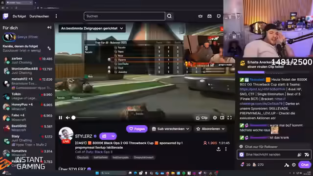 00:40:48Der Streamer spricht über neue Produkte von ESM, insbesondere Kreatin-Gummis und einen neuen Spekulatius-Riegel. Er lobt den Spekulatius-Riegel als den besten, den ESM je herausgebracht hat, und empfiehlt, auf die Black Week zu warten, um von Rabatten zu profitieren. Anschließend kehrt der Fokus zum Black Ops 2 Turnier zurück. Es gibt weiterhin technische Schwierigkeiten beim Joinen von Lobbys, was an die 'Black Ops 2 PS3 Struggles' erinnert. Die Teams und Regeln werden erneut besprochen, und es wird festgestellt, dass in jedem Team mindestens ein Spieler ist, der keine BO2-Erfahrung hat. Die Turnierorganisatoren werden kritisiert, da der Cup um 14 Uhr beginnen sollte, aber noch immer Erklärungen zu den Teams und Regeln gegeben werden, während die Spiele noch nicht begonnen haben. Die Favoriten für das Turnier werden diskutiert, wobei Team Pentagon, Kaiser und Daniel Slump als Top 3 genannt werden.