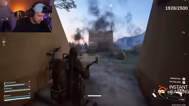 00:10:05Die Runde beginnt in der Karte 'Begraben der Stadt'. Der Streamer wählt die Il Toro 4, eine Waffe, die ihm im Vergleich zur Volcano 4 zuverlässiger erscheint, auch wenn sie langsamer ist. Es kommt zu einem Kampf, bei dem ein Gegner überraschend mit einem Nübel getroffen wird. Der Streamer und sein Partner Pannewitz koordinieren sich, um einen Gegner in einem Gebäude zu flankieren, verpassen ihn aber knapp, da dieser durch Rauchgranaten entkommt.