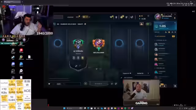 00:00:00Der Stream startet mit technischen Schwierigkeiten, da OBS abstürzt. Der Fokus liegt auf Valorant, aber der Streamer ist frustriert, da er in Diamond 1 festhängt und nicht aufsteigt. Er erwähnt, dass er seit einer Woche dort feststeckt und nicht versteht, wie andere Spieler wie Maus es geschafft haben, Ascendant zu erreichen. Er scherzt darüber, den Titel des Streams bald in 'Road to Gold' ändern zu müssen. Um sich zu stärken, konsumiert er verschiedene Proteinprodukte von ESN und einen Apfel. Es gibt auch Kommentare zu Twitch-Clips und dem Verhalten anderer Spieler im Spiel, insbesondere über einen Spieler namens Garst. Er kritisiert dessen Leistung in vorherigen Spielen im Vergleich zu dem aktuellen Spiel gegen ihn und Danny. Er bemerkt auch Patch-Probleme und bedauert den Verlust von Rangpunkten in Valorant, was seine Frustration weiter verstärkt. Er erwähnt Stream-Sniping-Erfahrungen, bei denen dieselben Spieler wiederholt im gegnerischen Team sind und so tun, als würden sie ihn nicht kennen. Der Konsum von Designer-Oat-Bars von ESN wird thematisiert, wobei er die hohe Kalorienanzahl und den Geschmack hervorhebt.