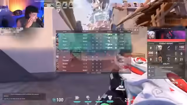 00:07:44Das Gameplay während des Streams ist sehr intensiv und von hoher emotionaler Beteiligung geprägt. Der Streamer reagiert überaus emotional und wütend auf Ereignisse im Spiel, oft mit expliziven Ausrufen. Er beschreibt Actionszenen detailliert, wie den Einsatz von Ultimates, Fähigkeiten wie Flash und Plant, und gezielte Angriffe, die zu 'Headshots' und Kills führen. Das Geschehen ist dynamisch und von hoher Aggressivität im Spiel und in der Reaktion geprägt.