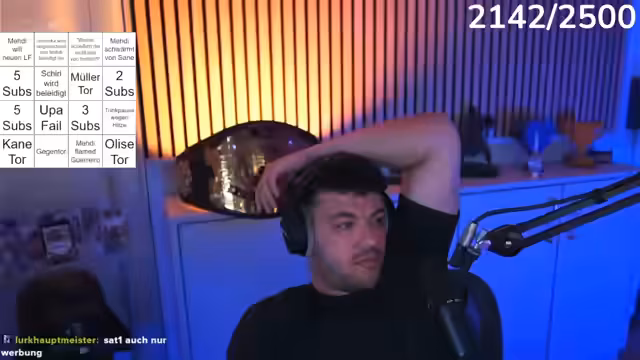 07:59:52Der Streamer kehrt zum Spiel zurück und äußert seine Erwartung, dass Bayern das Spiel noch drehen muss. Es werden individuelle Spieler kritisiert, die ihre Chancen nicht nutzen, und es werden Wechselmöglichkeiten diskutiert. Die Forderung nach einem Tor von Sané wird laut, um den eigenen Tipp-Kick-Schein zu retten.
