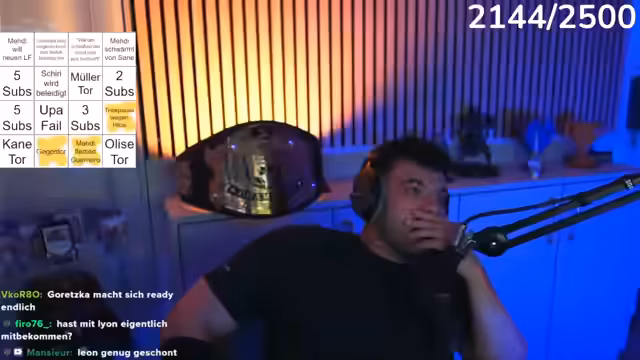 06:50:51Der Streamer beginnt live mit dem Spiel, wobei er Sekunden-Abgleich macht. Die ersten Spielszenen werden kommentiert, darunter eine Annahme von Neuer mit der Brust und eine Torchance für Leroy Sané. Der Streamer kritisiert Schiedsrichterentscheidungen, insbesondere eine Schauspieleinlage, für die er eine Zeitstrafe fordern würde. Das Spiel wird als langsam und physisch anstrengend beschrieben.