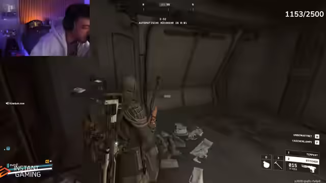 02:05:32Nach Verlusten im Trio-Modus plant Mehdi, nur noch mit minimalem Equipment ('Freeloadort') zu spielen. Er erklärt, dass er im Trio oft 50.000 Einheiten plus Waffen und Ausrüstung verliert. Stattdessen will er vorsichtig looten, früh extrahieren und auf Gier verzichten. Sein Ziel ist, durch konservatives Vorgehen stetige Gewinne zu erzielen und den Frust durch ständige Verluste zu vermeiden.
