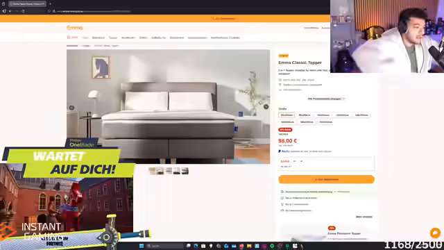 06:08:10Der Streamer kündigt eine offizielle Partnerschaft mit Emma Matratzen an und stellt deren Produkte vor, insbesondere Kissen und Topper. Er erklärt die Vorteile für die Rückengesundheit, teilt persönliche positive Erfahrungen mit den Kissen und bewirbt aktuelle Angebote mit bis zu 50% Rabatt. Mit dem Code 'MEDI' erhalten Zuschauer zusätzliche 5% auf den Einkauf. Die Partnerschaft beinhaltet 100 Nächte risikofreies Testen, kostenlosen Versand und Abholung bei Rückgabe. Der Streamer betont, dass Investitionen in Schlafkomfort besonders wichtig sind und fordert die Community auf, die Produkte zu prüfen und Feedback zu geben.