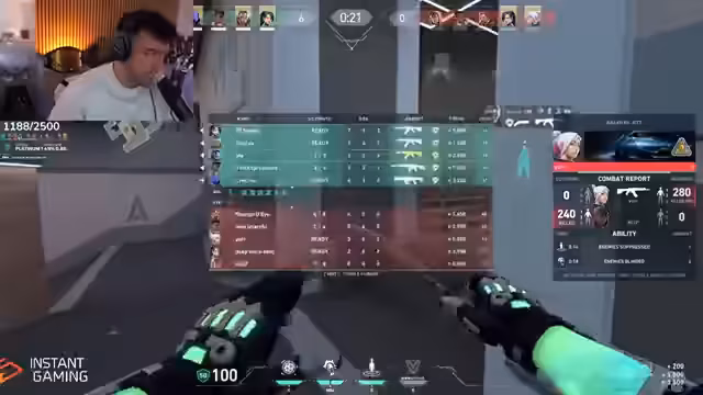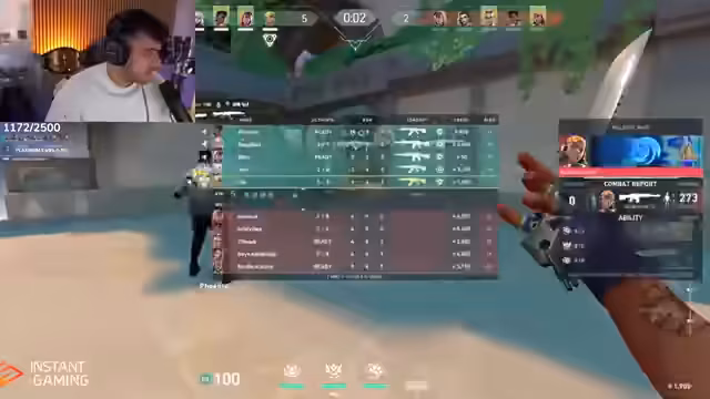 00:22:53Neben der Sportbetrachtung spielt der Streamer Valorant. Er kämpft darum, aus einer negativen Abwärtsspirale in der Platinum-Rank auszubrechen. Er kritisiert den schlechten Spielsinn seiner Mitspieler, das Fehlen von Kommunikation und strategischem Verständnis. Trotzdem gibt es auch Lichtblicke, wie einen sensationellen Triple Kill. Auch die Zuschinteraktionen sind ein Thema, wobei der Streamer Spenden für die Community ankündigt und sich für die Unterstützung bedankt, wie z.B. mit der 15-Sub-Geste von 'Crashies'.