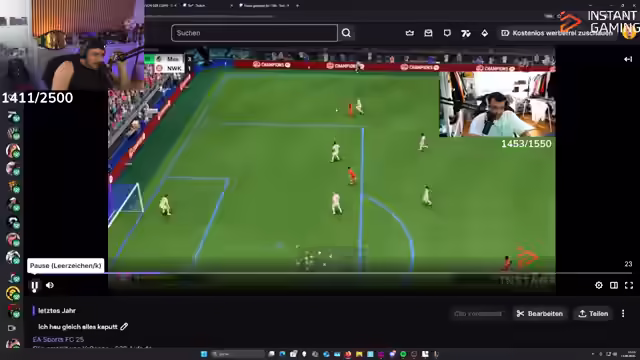 01:55:13Es wird eine Partnerschaft mit Instant Gaming hervorgehoben, inklusive eines Ref-Links im Chat, der zum Supporten gedacht ist. Es gibt keinen direkten Code, sondern einen RefLink. Der Streamer kündigt einen 10-tägigen Urlaub ab Samstag an und bittet die Zuschauer, den Link zu speichern und für Einkäufe zu nutzen, um ihn zu unterstützen. Rabatte auf verschiedene Produkte wie Borderlands (26%) und NBA 2K26 (29%) werden erwähnt. Playstation- und Guthabenkarten sind ebenfalls reduziert, z.B. 11 Euro Rabatt auf 100 Euro PSN-Karten. League of Legends Points und Valorant Points sind ebenfalls reduziert erhältlich. Der Streamer bedankt sich für die Unterstützung und wünscht viel Spaß beim Shoppen über den Link. Des Weiteren wird kurz die Champions League Watch Party am Donnerstag erwähnt, wobei Bayern am Mittwoch spielt. Der Streamer plant, spontan zu entscheiden, wann er weitere Aktionen macht, möglicherweise morgen, übermorgen oder nachher.