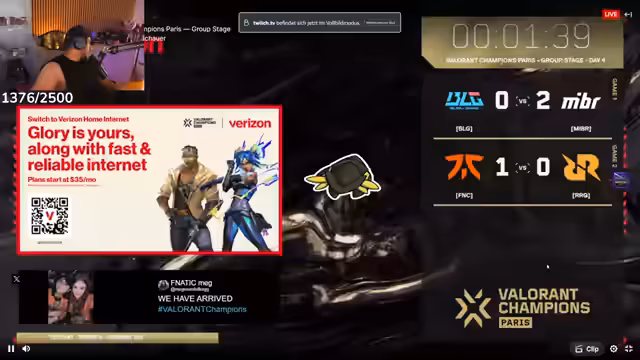 03:08:37Nachdem sich der Streamer intensiv über FIFA geärgert hat, wechselt er das Thema. Er kündigt an, eine Valorant-Watch-Party zu machen, da er von Riot die Erlaubnis hat, Champions-League-Spiele zu streamen. Er beginnt mit dem Stream eines Spiels von BLG gegen MIBR und kommentiert das Geschehen.
