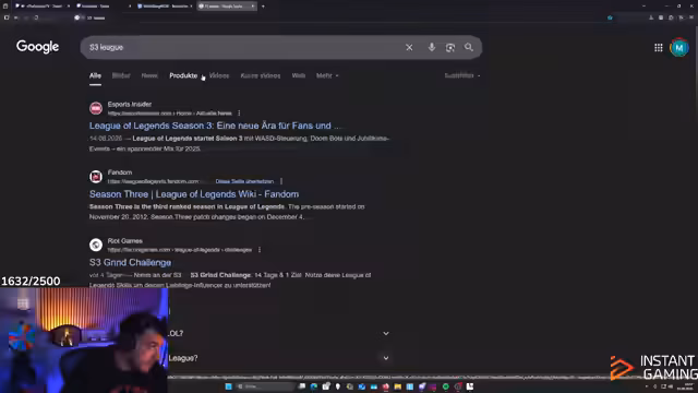 08:50:29Es bricht ein Streit zwischen dem Sprecher und einem Zuschauer über dessen Erfahrung in League of Legends aus. Der Sprecher zweifelt die Glaubwürdigkeit des Chatters an, der behauptet, das Spiel seit 2014 zu spielen. Um seine lange Karriere in LoL zu beweisen, versucht der Sprecher verzweifelt, seinen eigenen Account zu finden, um den genauen Zeitpunkt seines ersten Spielens zu ermitteln. Dies führt zu einer längeren, unproduktive Suche in den Menüs des Spiels, um Beweise für seine Glaubwürdigkeit zu finden.