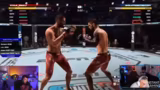 09:39:41Während der UFC-Spiele wird Danny Lob für seine Leistung erhalten. Er hat einen schwierigen Kampf gegen Sugar Sean O'Malley, bei dem ihm der Streamer taktische Tipps gibt. Bei einem Sieg wäre es ein großer Erfolg für Danny. Der Streamer beschreibt die Kämpfe als "brutal" und zeigt sich begeistert von den "Fights" und dem "Game Sense" der Spieler.