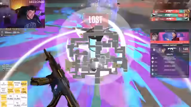 04:45:38Das Gameplay von Valorant steht im Fokus der Kritik und Begeisterung. Der Streamer schildert ein katastrophales Raw-Match, das er als den schlechtesten seit langer Zeit ansieht, und teilt die Bewertung 0 von 10 im Chat mit. Er wirft seinem Team vor, untätig zu sein (AFK), und beschwert sich über spielentscheidende Fehler, insbesondere beim Einsatz von Fähigkeiten wie Fade und Cypher, was zu frustrierenden Niederlagen führt.