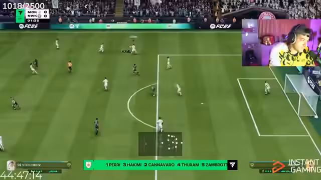 05:21:42Der Streamer spielt gegen einen Gegner namens Pannewitz und bemängelt den hohen Ping von 160, was das Spiel erschwert. Er diskutiert die Schwierigkeiten mit der Verteidigung und die Verwendung von Spielern wie Xavi und Kimmich. Es kommt zu technischen Problemen, und der Streamer frustriert über die Unfähigkeit, seine Verteidiger korrekt zu steuern und Lücken im Spiel zu erkennen.