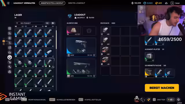 00:40:59Nach einem erfolgreichen Raid ist das Hauptthema der Umgang mit der erbeuteten Ausrüstung. Es gibt eine Debatte über die faire Verteilung der Waffen, insbesondere zwischen Bobcat und Volcano. Der Streamer und Isa einigen sich letztlich darauf, die Waffen im Rhythmus zu tauschen. Danach folgt ein Blick auf den Inventarwert, der sich auf über 250.000 Beliebtheitspunkte beläuft, und eine Diskussion über den Verkauf von ungenutzten Gegenständen.