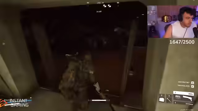 00:56:50Der Streamer konzentriert sich wieder voll auf das Spiel und beschreibt seine Bewegungen und Sichtlinien sehr detailliert. Er verlagert sich auf Flankierungsmanöver und versucht, Gegner aus ungewöhnlichen Winkeln zu überraschen. Die Gespräche drehen sich um die Effektivität von Waffen auf unterschiedlichen Distanzen und um die Bedrohung durch Campende Gegner in engen Räumen.