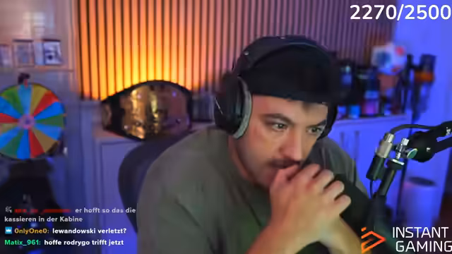 02:30:24Der Streamer erwähnt seine Teilnahme an einer Kicktipp-Runde mit Kollegen und äußert sich über aktuelle Fußballergebnisse. Er zitiert ein Spiel, bei dem es angeblich 7 rote Karten gab, und äußert Zweifel an der Richtigkeit der auf Fußball.de genannten Daten. Es gibt eine Diskussion über einen vermeintlichen Sieg von Sitten mit 2-6, was als unwahrscheinlich erscheint. Der Streamer hofft, dass der Account "Delay" seine aktuelle Begegnung gewinnt und verweist auf die Verwirrung um die angezeigte Zeit und Spielstände im Internet.