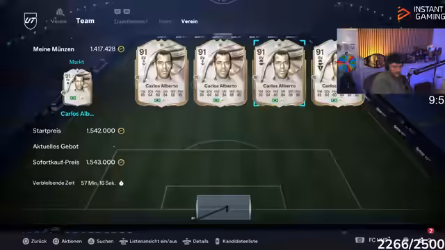 01:43:58Die Unterhaltung konzentriert sich nun auf die Erstellung von Squad Building Challenges (SBCs) und das management des FIFA-Kaders. Es gibt Pläne, neue Spieler wie Pogba zu testen, obwohl dieser als "Müllmann" bezeichnet wird. Für die Innenverteidigerposition wird eine neue Karte gesucht, wobei Blanc als vorübergehende Lösung dient. Der Streamer erwägt, Carlos Alberto für die Zentrale zu holen und kontrastiert die Performance von Pogbas Goldkarte mit seiner Special Card. Er kündigt an, einen "klassischen" Spieler zu ziehen, um Coins zu sparen, und erwägt einen Wechsel des Torwarts, wobei spezielle Karten gesucht werden.