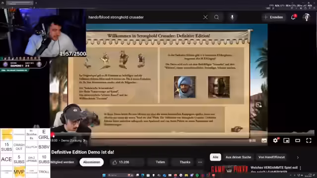 00:07:47Der Stream beginnt mit einem dramatischen In-Game-Zitat über die Pflicht eines Wachsoldaten, der sein Leben auf der Mauer widmet, ohne Ruhm oder Besitz zu suchen. Der Streamer, Medi, identifiziert sich selbst als 'Medi, die Krähe' und wechselt dann abrupt zu seiner Valorant-Performance. Er teilt mit, derzeit Platz 17 zu belegen, und vergleicht seine Anfänge mit denen von Cristiano Ronaldo. Während eines Spiels erwähnt er, dass sein Team im Komposter ist und er Samen besitzt, was auf ein spezifisches Spielziel oder eine Map-Strategie hindeutet.