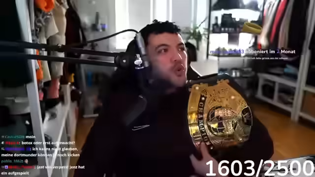 00:07:38Der Stream beginnt mit einem Zitat, das an einen Eid erinnert, gefolgt von einer selbsternannten Ankündigung als 'Medi, die Krähe'. Es folgen Ausrufe der Überlegenheit und Selbstbeweihräucherung. Der Streamer interagiert mit dem Chat, wobei er sich über einen erreichten Platz im Spiel freut und rote Bethesam erwähnt. Er kündigt an, kurz Ruhe zu brauchen und spricht mit jemandem über Samen in einem Komposter. Es wird festgestellt, dass er im Chat der Erste ist. Später im Stream spricht er über ein Erlebnis, bei dem er im Spiel von einem Geist abgeschossen wurde, und äußert seine Freude über einen Sieg. Er begrüßt die Zuschauer und bedankt sich für deren Unterstützung, inklusive Subs und Geschenke aus der Schweiz. Der Streamer interagiert mit dem Chat und liest Namen vor, wobei er sich bei den Zuschauern für ihre Unterstützung bedankt und Aktionen für sie durchführt. Er fragt den Chat, ob er sich den Kopf gegen die Wand hauen soll. Erwähnt wird auch, dass jemand etwas verpasst hat und dass ein Sub für ein Intro gegeben wurde.