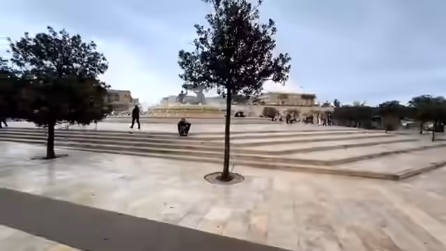 00:01:33Die Gruppe erkundet Valletta und zeigt verschiedene Sehenswürdigkeiten wie historische Gebäude, Brunnen und die typische Architektur der Stadt. Sie stehen an einem Wahrzeichen - den Mauern, die im 16. Jahrhundert gegen die türkische Invasion verteidigt wurden. Dabei führen Gespräche über Geschichte und Kultur Maltas. Sie beobachten auch die vielen Touristen und lokalen Einwohner.