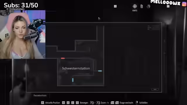 03:55:55Die Orientierung geht verloren, da der Weg in verschiedene Flügel der Anstalt komplex und unübersichtlich ist. Die Streamerin weiß nicht mehr, wo sie sich befindet und welchen Weg sie einschlagen soll. Ein Gegenstand, der für das Fortschreiten im Spiel notwendig ist, das Level-1-Armband, wird gesucht, ohne genau zu wissen, wo es sich befindet. Dies führt zu viel unnötiger Lauferei und Zeitverlust.