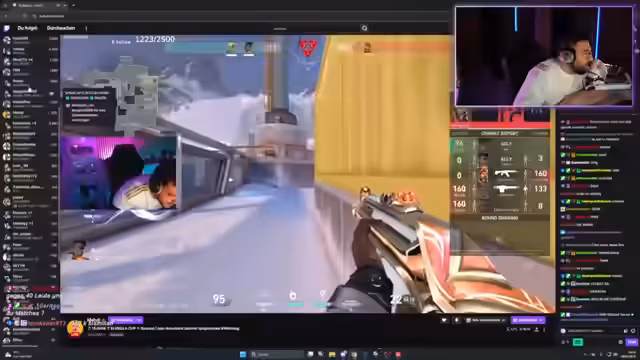 05:40:57Der Streamer ist mitten in einem intensiven Valorant-Spiel auf der Map Ascent. Die Situation ist äußerst knapp und spannungsgeladen. Sein Team kämpft gegen ein gegnerisches Team, das aggressiv auf B-Seite drängt. Der Streamer gibt klare Anweisungen und versucht, die Runden mit taktischem Rauchgebrauch und präzisem Spielzug zu retten, während er ständig die Positionen der Gegner im Auge behält.