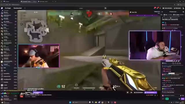 04:30:32Der Stream konzentriert sich auf eine detaillierte taktische Analyse des aktuellen Spiels, insbesondere im Valorant. Der Kommentator gibt Anweisungen für das Team, wie etwa mit Breach Aftershock zu agieren und welche Positionen wie Sage zu besetzen sind. Es werden komplexe Spielzüge besprochen, das Einnehmen von Punkten wie C und das Nutzen von Smokes und Flashes zur Informationsgewinnung und zur Sicherung von Vorteilen im Spiel. Der Fokus liegt auf der präzisen Kommunikation und der schnellen Anpassung an die gegnerischen Aktionen.