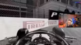 03:15:47Als letztes Rennen wird ein Zeitrennen auf der Strecke von Monaco im Regen angesetzt. Der Streamer kämpft mit den schwierigen Bedingungen und der fehlenden Grip. Er bittet den Chat um Tipps zur Lenkrate und zur Linearität der Bremsen. Trotz Bemühungen kann er das Qualifying nicht erfolgreich abschließen und wird disqualifiziert, was seine Frustration über die Tücken des Rennens verdeutlicht.