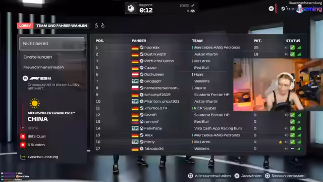 00:07:20Nach dem erfolgreichen Warm-up startet eine öffentliche Lobby, in der das erste Rennen auf der Strecke Australien stattfindet. Die Streamerin erkennt, dass viele Teilnehmer aggressiv fahren und sie in die Bande drücken, was den Spaß trübt. Trotzdem gelingt es ihr, eine akzeptable Position zu erreichen, und sie stellt die Strategie vor, zukünftig Spieler, die fair fahren, in einer Liste zu sammeln, um bessere Lobbys zu finden.