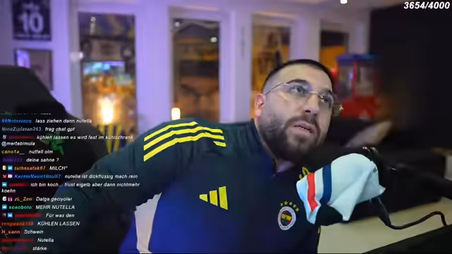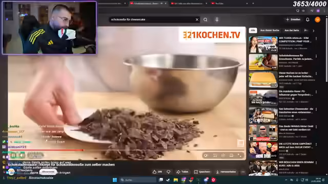 01:08:33Der Streamer unterbricht das Streaming-Thema und widmet sich der Zubereitung eines Snacks. Er klagt über fehlende Schokolade und nutzt stattdessen Nutella, Sahne und Zucker. Der Prozess wird live gezeigt und kommentiert, wobei der Streamer über die Konsistenz und das Aussehen des Gerichts spricht. Der Chat wird aktiv in die Zubereitung einbezogen und gibt Tipps zur Verwendung von Sprühsahne.