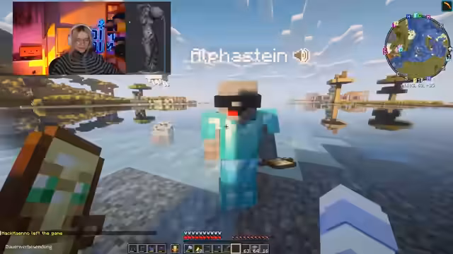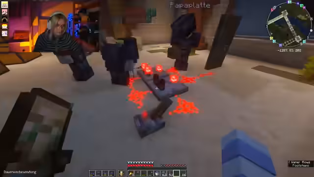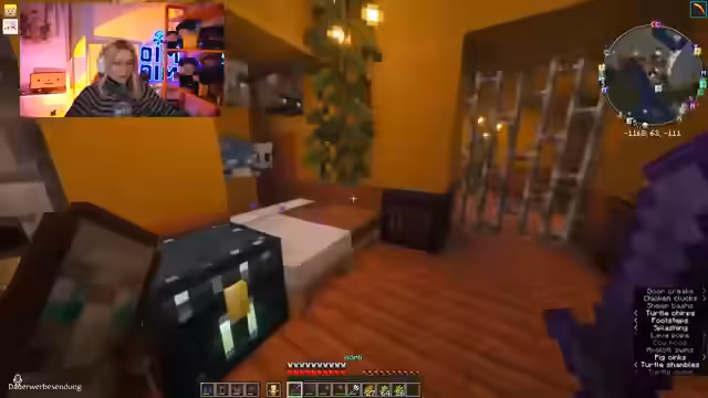 02:52:53Veto stößt zur Nachtschicht hinzu und erkundigt sich nach dem Fortschritt und den Aufgaben. Die Streamerin erklärt, dass sie eine Frauenkörper-Statue im Wasser baut und Veto bietet sofort seine Hilfe an. Sie bittet ihn, Cobble Deep Slate zu farmen, da sie mehrere Stacks davon benötigt, möglicherweise bis zu zwei Doppelkisten. Veto nimmt den Auftrag an und ist bereit, die ganze Nacht daran zu arbeiten. Diese Zusammenarbeit ist besonders willkommen, da die Streamerin den 'Late-Night-Chill-Modus' schätzt und die Möglichkeit zum Coworking nutzt. Die Interaktion zeigt die Effizienz und den Teamgeist, der auch in den späten Stunden des Streams herrscht, um die Bauprojekte voranzutreiben.
