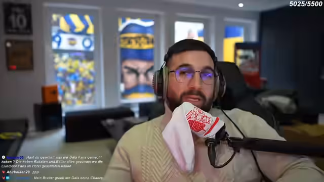 02:40:40Mit einer festen Überzeugung prophezeit der Streamer einen 2:1-Sieg für Galatasaray gegen Liverpool, basierend auf einem Gefühl oder sogar einem Traum. Die Aufstellung beider Teams wird analysiert, mit Kritik an Liverpools Entscheidungen, wie etwa den Ausschluss von Spieler Sané. Es wird darauf hingewiesen, dass Galatasaray unter Druck steht und als Außenseiter in das Spiel geht, aber dennoch Optimismus herrscht. Zuschauer werden aufgefordert, in den Discord zu kommen, um gemeinsam den Stream zu verfolgen und die Atmosphäre des Spiels zu teilen. Diskussionen über mögliche Torfeiern und die Bedeutung des Sieges für die moralische Stimmung werden angekündigt.