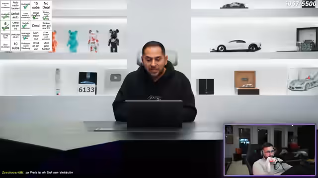 02:37:35Der Streamer diskutiert ausführlich einen gescheiterten Autodeal mit Mehmet und dem Händler Omid. Trotz intensiver Verhandlungen und eines Angebots von Omid kommt es zu keinem Abschluss, da die Differenz von 6.000 Euro nicht überbrückt werden konnte. Dabei reflektiert er über seine Erfahrungen im Autohandel, betont, dass er sowohl Gewinne als auch Verluste gemacht hat, und erklärt die Marktsituation: Neuwagen verlieren oft an Wert, sobald sie registriert werden, unabhängig von Marke oder Modell. Der Streamer stellt klar, dass Verluste im Autohandel häufig unvermeidlich sind und einen frühen Verkauf oft sinnvoller machen als das Aufschieben von Verlusten. Er wünscht Mehmet das Beste für die Zukunft, auch wenn der Deal nicht zustande gekommen ist.