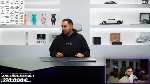 02:10:40Die Verhandlung intensiviert sich zwischen Omid (Stream) und Mehmet (Verkäufer). Omid bietet letztlich 190.000 Euro, was der Verkäufer für zu niedrig hält. Beide ziehen externe Berater hinzu, die unterschiedliche Einschätzungen geben. Der Verkäufer befürchtet einen Wertverlust von 10.000-15.000 Euro bei längerer Haltedauer, steht aber unter Zeitdruck. Letztlich entscheidet sich Mehmet nach Rücksprache mit einem Freund gegen den Verkauf, da der Preis von 190.000 Euro seinen Erwartungen nicht entspricht und er aufgrund der fehlenden Ausstattung und Steuervorteile das Risiko eines finanziellen Verlusts nicht eingehen möchte.