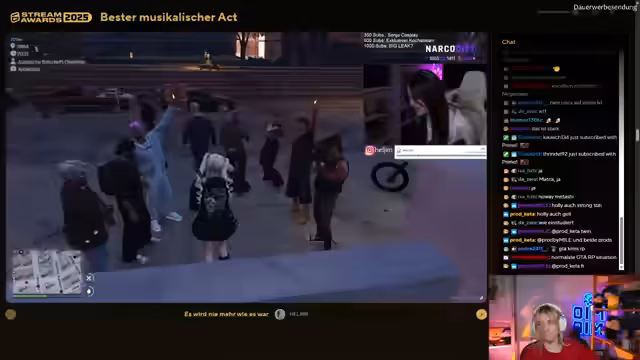 05:15:56Die Clip-Analyse konzentriert sich nun auf die letzten Kategorien der Abstimmung. Die "Beste Zuschauerinteraktion" zeigt einen Fan, der einen extrem angepassten Burger bestellt, und eine Szene, in der Zuschauer ein Handy aus dem Wasser fischen. Bei der "Beste Newcomerin" wird Kroko für seinen langjährigen, durchgehenden Stream-Einsatz und seine Unterhaltung gewürdigt. "Awkward Moment"-Nominierungen zeigen peinliche Smalltalk-Situationen und Pannen, die die Zuschauer begeisterten.