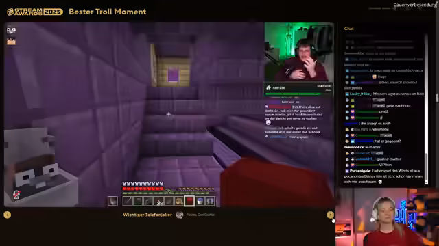 02:17:59Die Streamerin beklagt die geringe Präsenz der angekündigten sechs Teilnehmer im aktuellen Minecraft-Projekt. Sie stellt fest, dass nur zwei Säulen auf dem Server aktiv sind, obwohl das Projekt seit drei Wochen erfolgreich lief. Die Frustration über die mangelnde Teilnahme wird deutlich, und es wird überlegt, wie man die Situation verbessern kann. Es wird auch über das bevorstehende Minecraft-Projekt FitnaCraft gesprochen, das Anfang oder Mitte Dezember starten soll. Die Streamerin äußert Bedenken hinsichtlich der Zusammensetzung der Teilnehmer, da diesmal mehr erfahrene Spieler eingeladen wurden, was zu einer intensiveren und potenziell chaotischeren Erfahrung führen könnte. Sie erinnert sich an vergangene Konflikte und Leaks in ähnlichen Projekten und erwartet, dass TikTok erneut mit Clips über das Chaos brennen wird.
