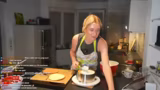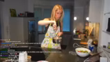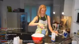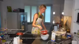00:26:08Die Streamerin mischt nun die Zutaten für den Biskuitboden. Nach dem langen Rühren von Eier, Zucker und Salz für 20 Minuten, was sie als anstrengend beschreibt, wird das gesiebte Mehl vorsichtig untergehoben. Da sie nur eine Backform zur Verfügung hat, beschließt sie, zwei Böden zu backen, einen normalen und einen mit Kakao. Vor dem Backen fetten sie die Form ein und füllen die Teige hinein. Während der Backzeit im Ofen interagiert sie intensiv mit dem Chat und nimmt weitere Anregungen für die Torte entgegen. Der erste Kuchenboden steigt jedoch so stark auf, dass er über die Form hinauswächst, was sie auf den Zusatz von Backpulver zurückführt, den sie aus Versehen beigegeben hatte.