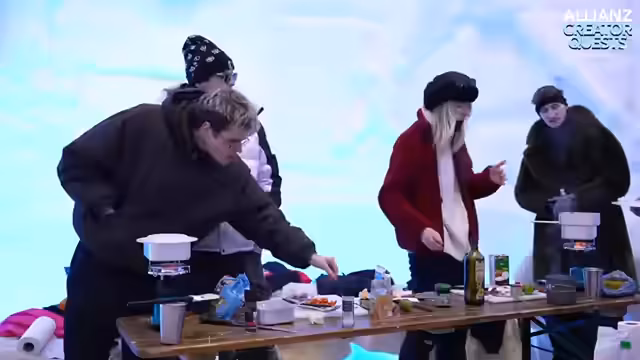 03:07:53Das Team diskutiert die Regeln und Strategien für die bevorstehende Eis-Kunstchallenge. Sie planen die Arbeitsteilung, um das zerbrechliche Material effizient zu bearbeiten, und betonen die Wichtigkeit von Vorsicht. Gleichzeitig wird auf Gewinnspiele für Zuschauer hingewiesen, darunter Olympia-Tickets und ein Gruppenausflug. Die Vorbereitungen laufen, während das Team die künstlerische Umsetzung bespricht.