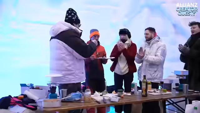 07:23:32Eine unbeteiligte Person vom Iglo-Dorf verkostet blind die Gerichte beider Teams. Bewertungskriterien sind Geschmack, Schärfe und Temperatur. Team 1 (Merleperle/Faister) erhält Lob für pikanteres, warmes Essen, während Team 2 (Nicistemmler/Niekbeats) für kalte, rohe Nudeln kritisiert wird. Die Verkostung entscheidet über Punkte für die Allianz Creator Quest. Es folgt eine kurze Würdigung der Kochbemühungen, trotz der Herausforderungen durch die Umgebung.