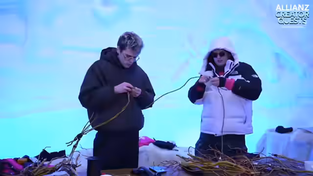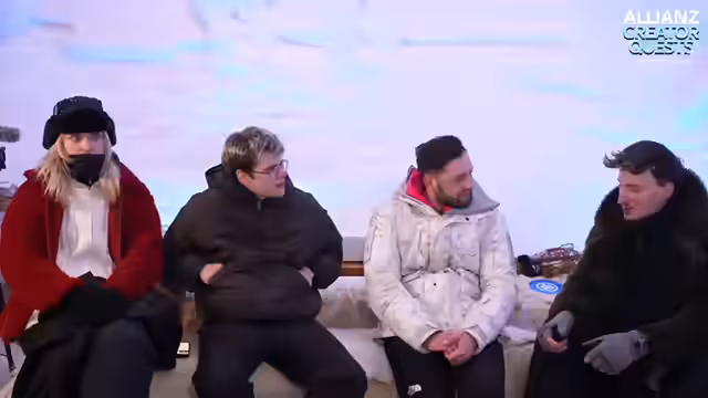 00:31:51Der Stream zur Allianz Creator Quest #6 auf der Zugspitze (2962m) wird eröffnet. Es handelt sich um ein Survival-Format ohne Komfort oder Essen, bei dem zwei Teams 48 Stunden in der Kälte gegeneinander antreten. Die Teilnehmer müssen Wärme durch Challenges erspielen, da keine externe Heizung vorhanden ist.