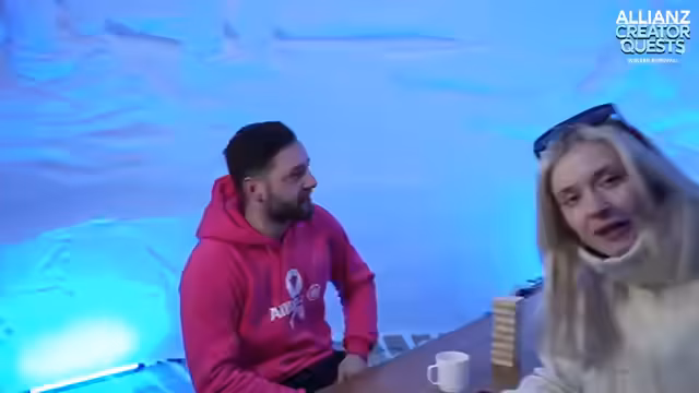 01:19:26Nach der Challenge diskutieren die Teilnehmer die körperlichen Auswirkungen (Kurzatmigkeit, Kälte). Es folgt ein Gewinnspiel für den Chat: Mit '!vote' können Karten für ein Area-47-Event gewonnen werden. Gleichzeitig wird auf die anstehende nächtliche Kälte hingewiesen – 'Winter is coming'. Die Allianz wird als Olympia-Sponsor für 2024 angekündigt.