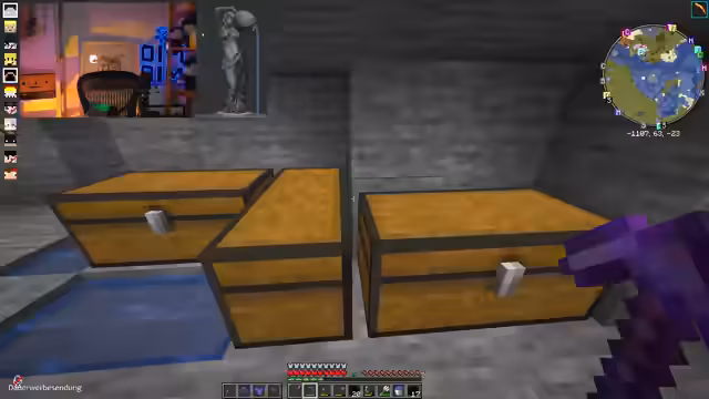 01:45:11Es geht intensiv um den Bau einer Statue, wobei der Streamer eine Vorlage importiert hat und diese nun detailgetreu umsetzen möchte. Dabei wird die Frage der Farbpalette und der Materialwahl diskutiert. Der Streamer entscheidet sich für Stein als Material, um den gewünschten Skulpturen-Effekt zu erzielen. Gleichzeitig wird die Notwendigkeit von Emeralden für den Handel gesprochen und die Inventarverwaltung mit verschiedenen verzauberten Gegenständen wie Fortune, Mending und Protection wird detailliert besprochen.