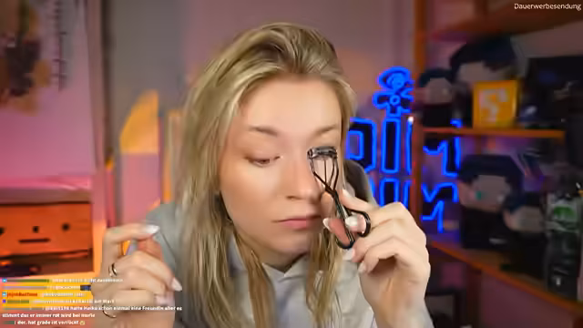 00:25:11Die Streamerin richtet einen dringenden Appell an die Zuschauer, das 'Shipping' zwischen ihr und Heiko zu unterlassen. Sie betont, dass sie lediglich Freunde sind und das unnötige Spekulieren die normale Interaktion zwischen ihnen erschwert. Sie möchte einfach 'chillig zusammen zocken und streamen', ohne dass romantische Untertöne hineininterpretiert werden. Nach diesem ernsten Thema kehrt sie zur Make-up-Routine zurück und trägt Wimperntusche auf. Sie erwähnt, dass eine neue Wimperntusche oft zu klumpig ist und besser funktioniert, wenn sie schon etwas benutzt wurde. Die Session endet mit dem Auftragen von Bronzer und der Feststellung, dass das Make-up-Tutorial für diejenigen, die es verpasst haben, im VOD verfügbar sein wird.