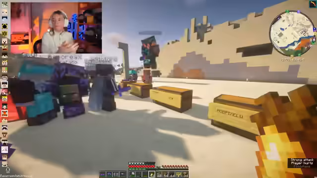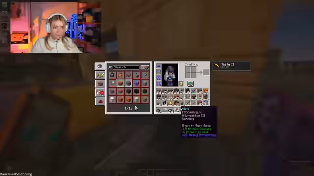 01:45:23Die Teilnehmer des Charity-Events diskutieren über die Effizienz des Kupferabbaus. Es wird festgestellt, dass ein Stack (64 Blöcke) 6,40 Euro für Charity einbringt. Die Person schlägt vor, eine Spitzhacke zu verwenden, die sofort ganze Reihen abbauen kann, um das Projekt schneller abzuschließen. Es wird die Idee eines Teams diskutiert, bei dem einer rechtsklickt und der andere abbaut, um die Effizienz zu steigern. NoRace ist besonders ehrgeizig und möchte einen Weltrekord aufstellen, indem er doppelt so viel Kupfer abbaut wie das zweitplatzierte Team. Die XP-Farm wird erneut erwähnt, um die Haltbarkeit der Werkzeuge zu gewährleisten.