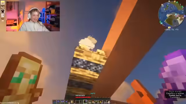 00:32:45Die Streamerin beklagt eine Quarz-Knappheit auf dem Server und die Notwendigkeit, viel zu handeln. Sie überprüft ihre Eisenfarm, die anscheinend nicht funktioniert, da die Villager keine Angst vor Zombies haben und die Farm leer gelootet ist. Die Lags auf dem Server werden erneut thematisiert, wobei die Streamerin sich als 'Server-Hater' bezeichnet und an frühere Zeiten erinnert, in denen VPNs zum Spielen benötigt wurden. Ein Spieler namens Manon wird für seinen Sub gedankt. Die Diskussion schweift ab zu einem Terraforming-Projekt eines anderen Spielers und der Frage, wo ein bestimmtes Gebäude platziert werden soll. Die Streamerin findet ein besseres Inspirationsbild für ihr Haus und drängt darauf, schlafen zu gehen, um die Nacht zu überspringen. Es wird über Fitnessstudio-Besuche und australische Akzente gesprochen.