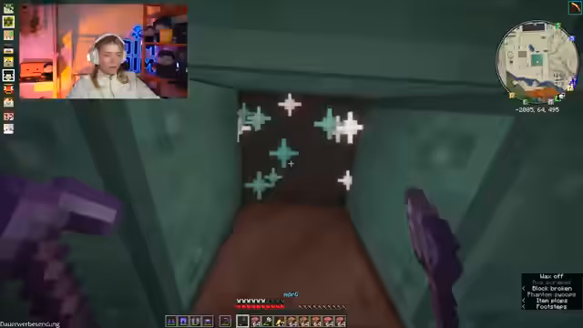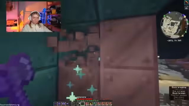 02:21:33Der Streamer ist seit einer Stunde damit beschäftigt, Kupferblöcke abzubauen, und hat den Chat seit drei Stunden nicht mehr gelesen, da er sich voll auf die Aufgabe konzentriert. Die Produktivität wird von den Zuschauern gelobt, während der Streamer die Anstrengung betont, die das Abbauen der Kupferblöcke mit sich bringt. Es wird spekuliert, dass bereits ein Viertel der Aufgabe erledigt ist, und die Charity-Aktion, für die 5400 Euro gesammelt werden, motiviert die Teilnehmer zusätzlich. Eine humorvolle Anekdote über ein "Basti-Kissen" und dessen Ursprungsversion sorgt für Lacher. Die Notwendigkeit, kontinuierlich Blöcke abzubauen und den Bereich sauber zu halten, wird immer wieder betont, während die Spieler versuchen, ihre Mausprobleme und die Server-Performance zu managen.