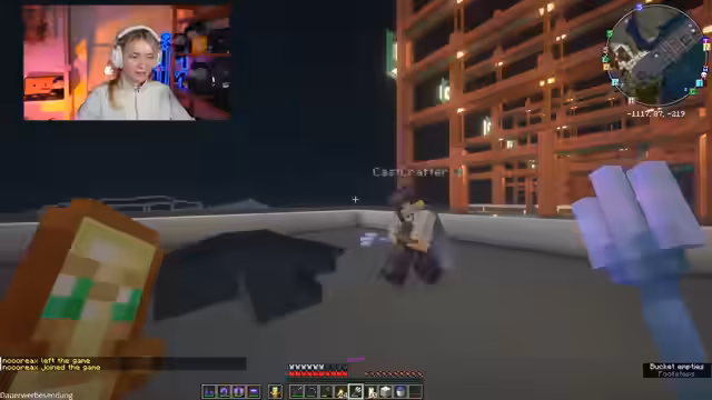 06:40:14Der Streamer beklagt sich über Baufehler und die Schwierigkeit, die richtigen Blöcke zu identifizieren. Er fragt nach dem Ping und technischen Problemen, da der Stream bei ihm laggt. Ein weiterer Spieler, Voxel, bietet an, seine Stein-Farm zu nutzen, im Austausch gegen Redstone. Es wird ein Deal ausgehandelt, bei dem der Streamer Redstone erhält und die Farm nutzen darf. Veto kommt kurz vorbei, um sich zu verabschieden, und wirkt dabei etwas traurig. Die Spieler verabschieden sich gegenseitig und beenden den Stream. Es wird noch über die Mikrowelle und das Stream Deck gesprochen, bevor der Streamer seine Freundin Marsha grüßt und humorvoll über ein getöpfertes Werk spricht, das Merle angeblich nicht mochte. Die Diskussion über den McFlurry-Geschmack und die Mischung von Wildberry Zero mit Wasser führt zu weiteren humorvollen Kommentaren.