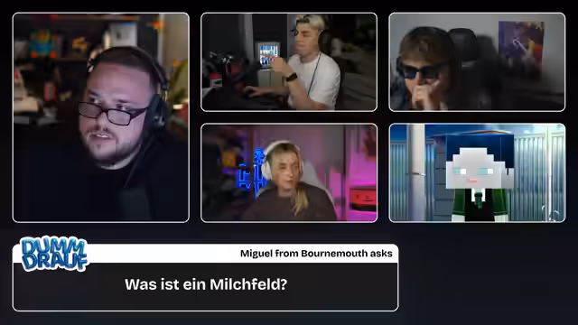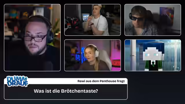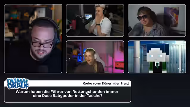 00:18:26Basti wird wegen seines Outfits aufgezogen, das wie eine Metzgerschürze aussieht. Er sollte es versifft aussehen lassen. Es wird darüber gesprochen, dass Kroko busy aussieht und am Daytraden ist. Es wird vermutet, dass er im Intro ist. Es wird eine Geschichte erzählt, wie man versehentlich fast nackt im Stream war. Kroko entschuldigt sich für die Verspätung, da seine Dusche übergelaufen ist. Basti bietet verschiedene Hintergründe an, darunter einen Park. Es wird festgestellt, dass sein Hintergrund wie eine Jugendvollzugsanstalt aussieht. Es wird gefordert, das Cover-Platte-Intro zu zeigen. Es wird die Gameshow mit Freunden angekündigt. Basti wird als geiler Gegner bezeichnet. Es wird der Moderator angekündigt. Es wird die Wortschöpfung 'dumm drauf' gelobt. Es wird das Team vorgestellt: Kevin (dumm, verpeilt, geizig), Paul (glücksschülsüchtig, zweimal geschieden, keinen Kontakt zu seinen Kindern), Merle (unemployed, sehr groß, sehr schlecht in Videospielen) und Basti (Schnurrbart, bewegliche Hüften). Es werden fantastische Rätsel und Fragen von Zuschauern angekündigt. Das erste Rätsel von Jay aus dem Altersheim ist der sogenannte Geldscheinkontakt.