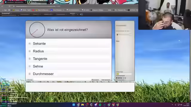 02:59:52Der Streamer beginnt mit mathematischen Aufgaben, die offensichtlich schwierig für ihn sind. Er diskutiert Begriffe wie Sekante, Radius, Tangente und Durchmesser, verwechselt diese jedoch und zeigt Unsicherheit. Er beklagt, dass er sich zu dumm für die Aufgaben fühlt und bittet um Verständnis für seine mangelnden Fähigkeiten in Mathematik.