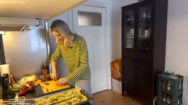 00:12:01Der Hauptteil des Streams besteht aus der spontanen und freestyle-artigen Kreativität in der Küche. Aus den restlichen Zutaten im Kühlschrank wie veganes Steak, Flammkuchenteig, Pilzen, Paprika und anderen Gemüsesorten werden verschiedene Gerichte geplant. Es wird eine Art Snack für die Reise vorbereitet und parallel ein Salat zubereitet, um alle Lebensmittel sinnvoll zu verwerten.